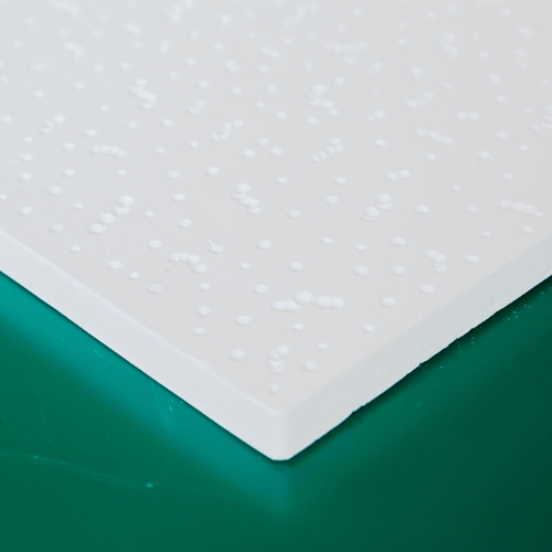 高晶天花板是以建筑石膏為基材,加入輕質(zhì)填料、適量的增強(qiáng)纖維 (不含石棉)和一定量的特種外加劑經(jīng)攪拌、澆注成型、烘干等工藝而制成。
