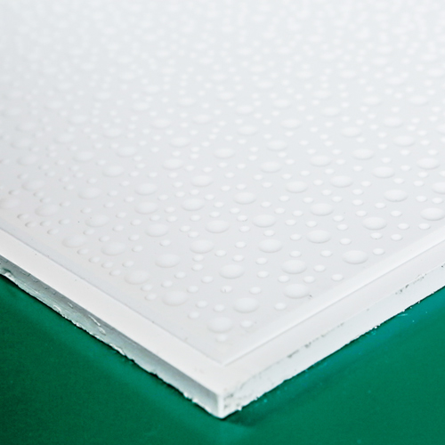 高晶天花板是以建筑石膏為基材,加入輕質填料、適量的增強纖維 (不含石棉)和一定量的特種外加劑經攪拌、澆注成型、烘干等工藝而制成。