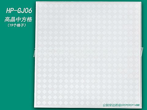 高晶天花板是一種(輕質高強)吊頂材料,是目前普通硅鈣天花強度的(2-3)倍,高晶天花采用(純天然)晶體優質石膏,(純天然)無機復合材料制成,無放射性,無任何有害物質與公害氣體,在水化過程形成密度特別高的(多孔)結構,對室內的潮濕空氣具有(吸收釋放)的雙重調節功能,并使用(納米改性)抗菌涂料,有效降解室內(甲醛、苯、氨)等有害氣體含量。此花型名稱為“四十九格”又叫大方格,常規尺寸595*595*14mm(公制)或603*603*14mm(英制)