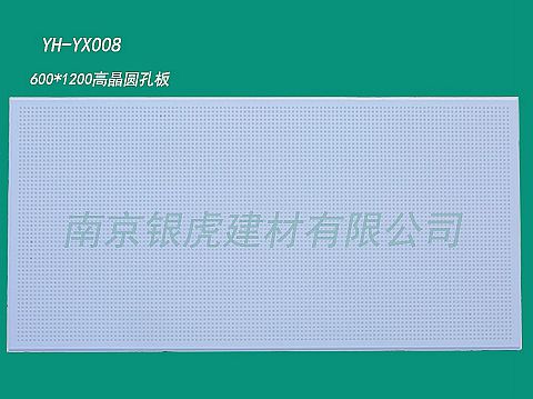 此花型名稱為“異型高晶圓孔板”常規尺寸600*1200*15mm(孔徑5mm)銀虎”牌天花板擁有獨特性、高密性的原材料配方及環保節能技術,使銀虎天花板引領吊頂材料的新潮流?!般y虎”牌高晶(硅鈣)復合天花板徹底解決了傳統天花吊頂材料變形、變黃、發霉、易污臟、粗糙、檔次低等通病與缺點,產品不僅具有防火、防水、防霉、高強、輕質、吸聲除噪、耐候抗老化、風化等優良的質量性能,而且裝飾效果美觀精致、靚麗高雅。